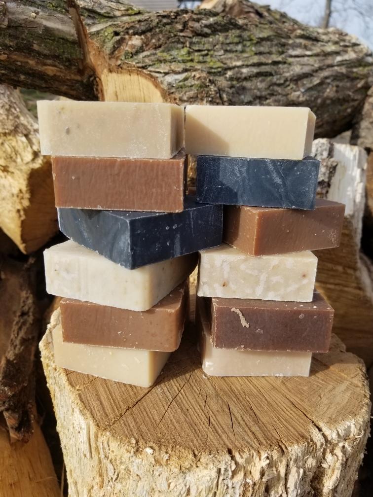 Since all of our soaps are handcrafted in small batches they will vary some in size, but they will weigh between 4 to 4.5 ounces. All soaps are $5.00 per bar, or if you buy 4 you get 1 free! We also offer logs of soap, which are 12 bars of the same scent for $50.00.